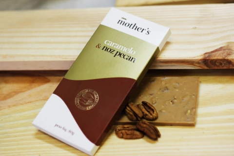 Explore o requinte a cada pedaço do nosso Tablete de Chocolate Belga enriquecido com Caramelo e Nozes Pecan cuidadosamente selecionadas.